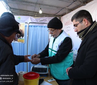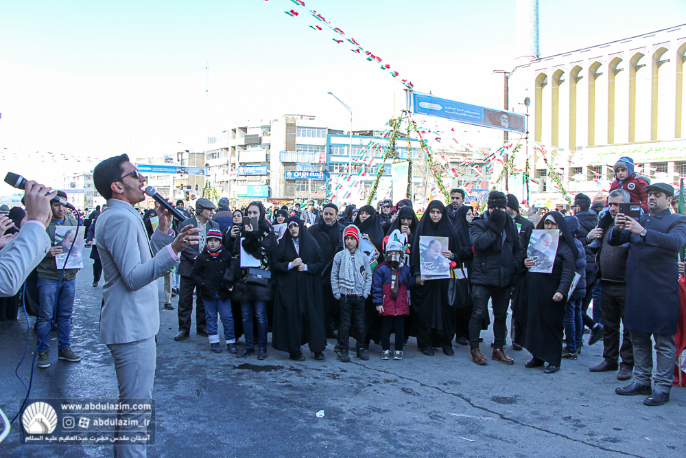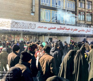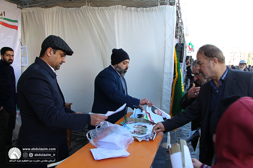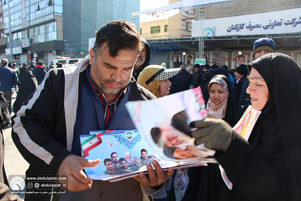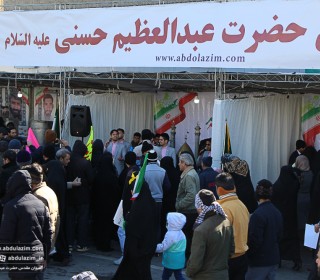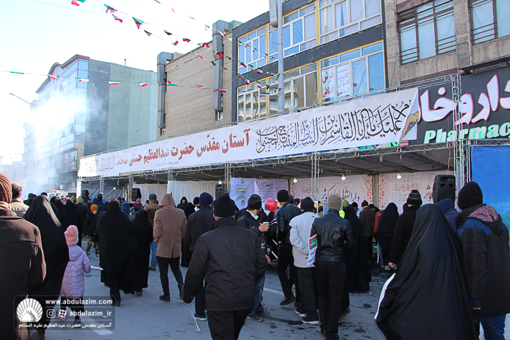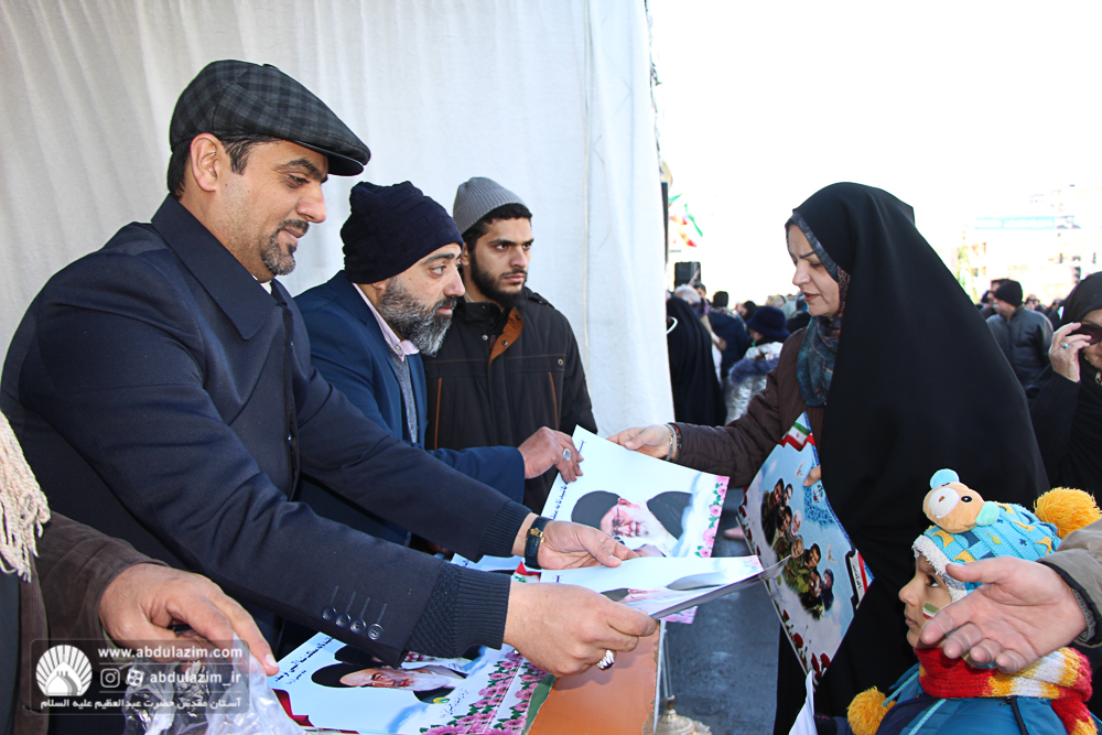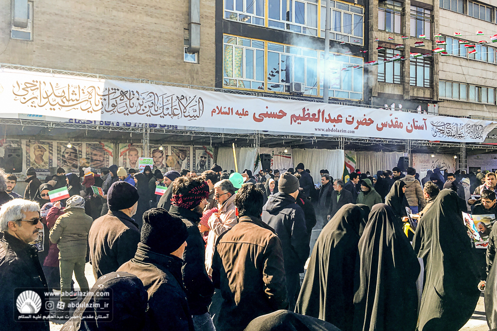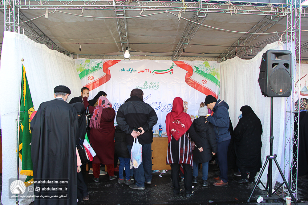 غرفه آستان مقدس حضرت عبدالعظیم (ع) در مسیر راهپیمایی 22 بهمن 98 / عکس: بیژنی