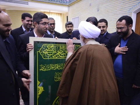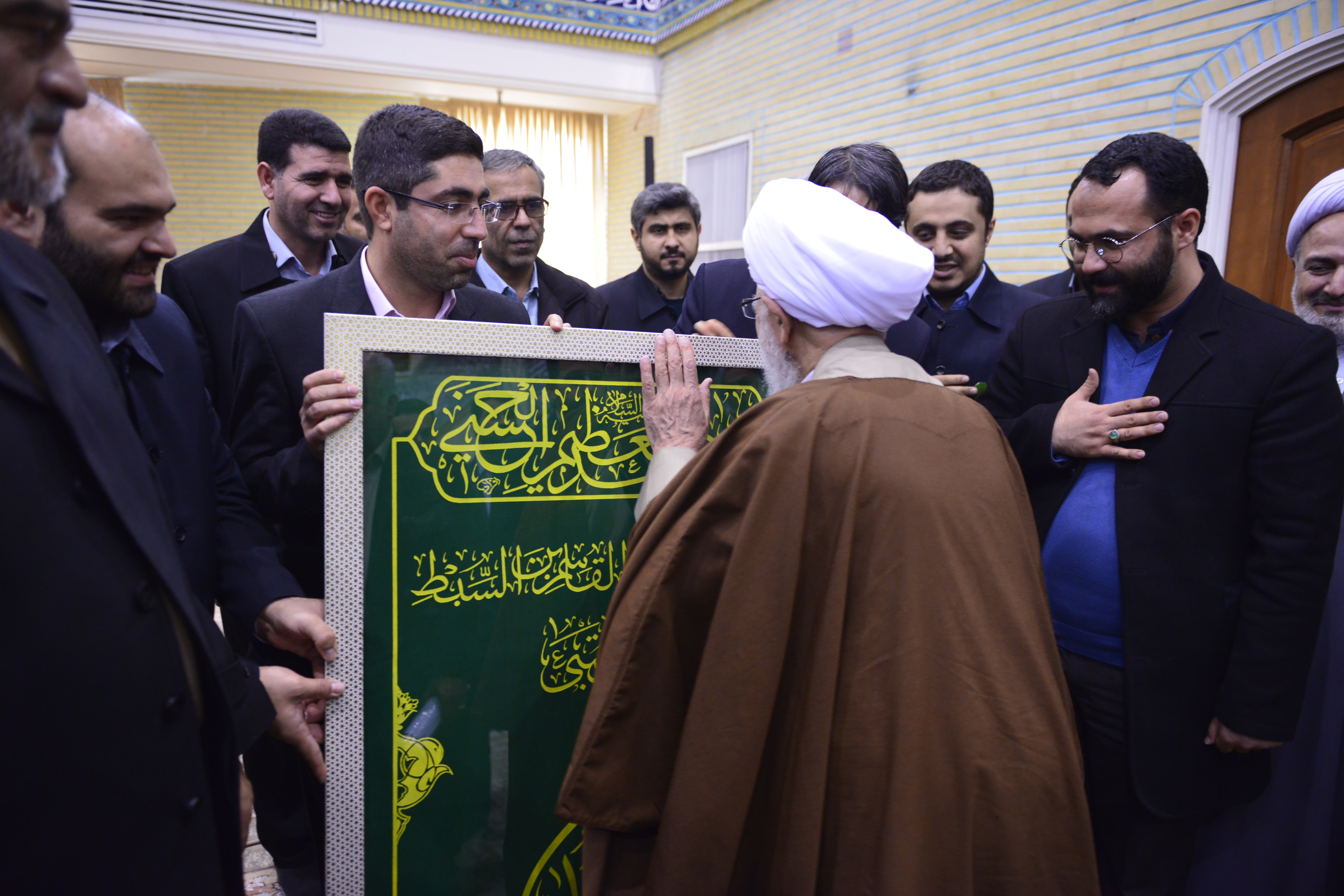 در پايان اين ديدار  پرچم متبرك و  مزين به نام حضرت سيدالكريم عبدالعظيم حسني(ع) به محضر اين مرجع عاليقدر اهدا گرديد.