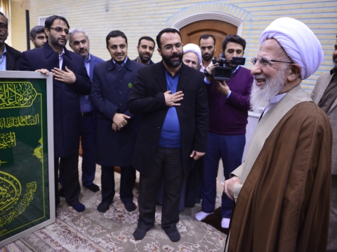 جمعی از خدام آستان مقدس حضرت عبدالعظیم حسنی(ع) با حضور در  بنياد بين المللي اسراء با آيت الله جوادی آملي ديدار كردند.