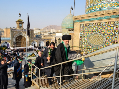 برگزاری آئین تعویض پرچم گنبد حضرت سیدالکریم(ع) در شب وفات آنحضرت