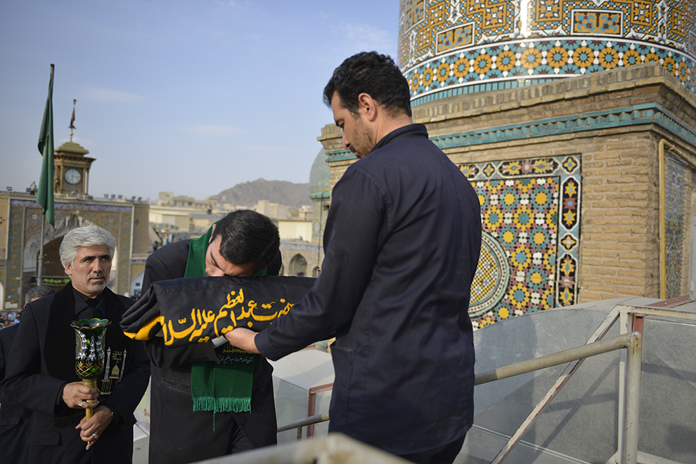 تعویض پرچم گنبد آستان مقدس به مناسبت عید سعید قربان / عکس: جلال اسدی