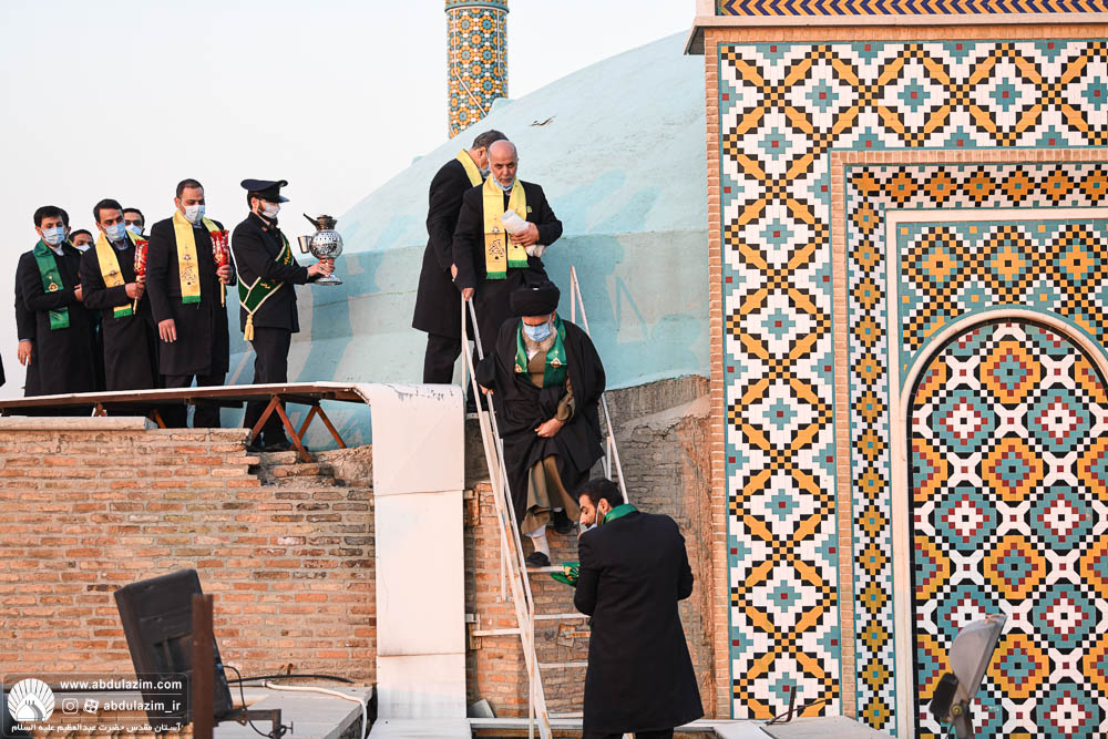 آئین تعویض پرچم گنبد در شب میلاد حضرت عبدالعظیم(ع) / عکس: فضل الله بیژنی