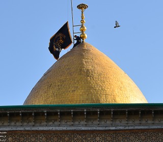 اهتزاز پرچم عزا بر فراز گنبد به مناسبت وفات حضرت عبدالعظیم حسنی(ع) / عکس: اسدی