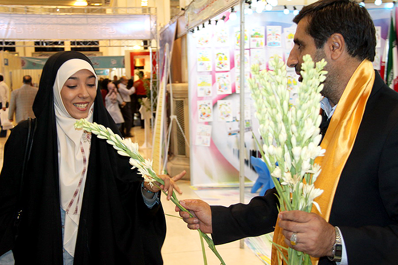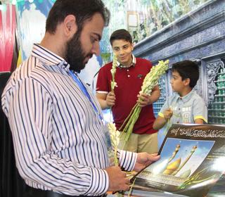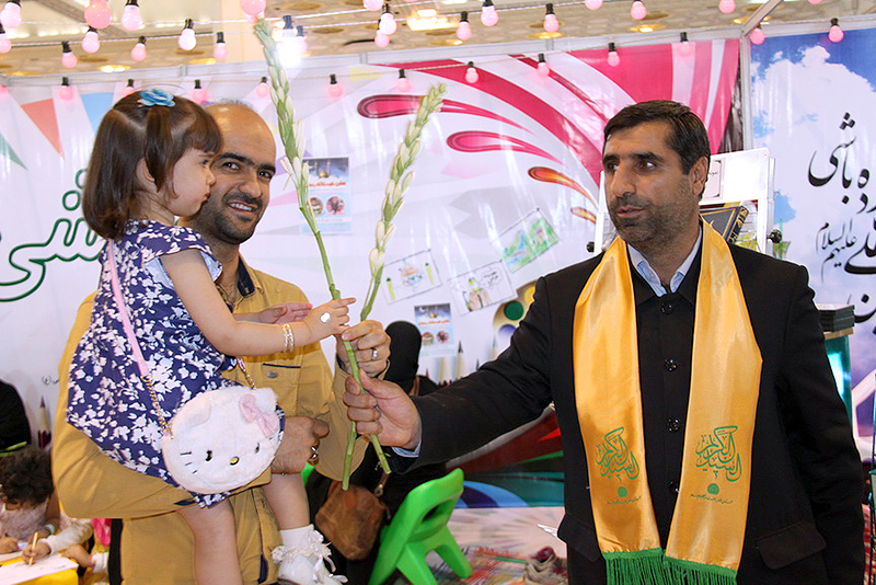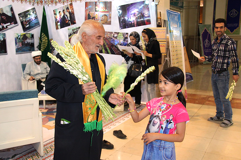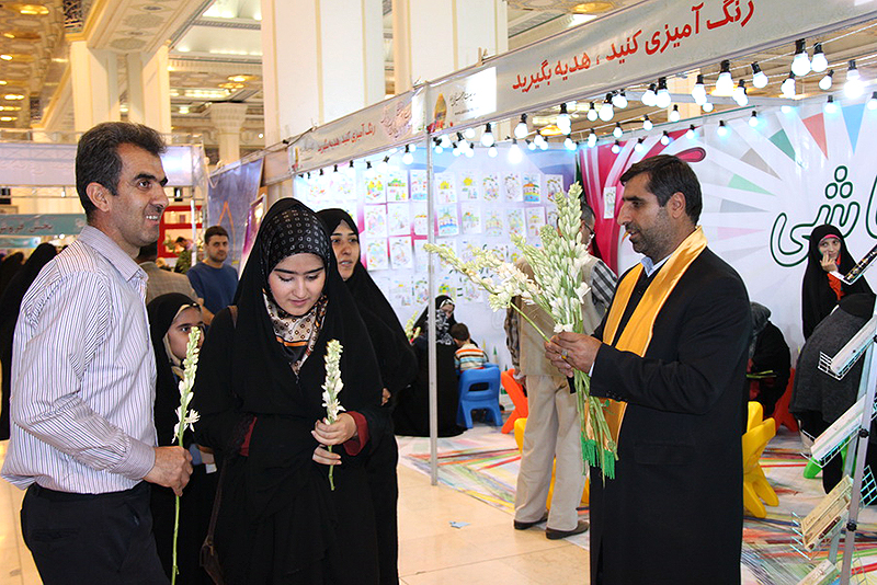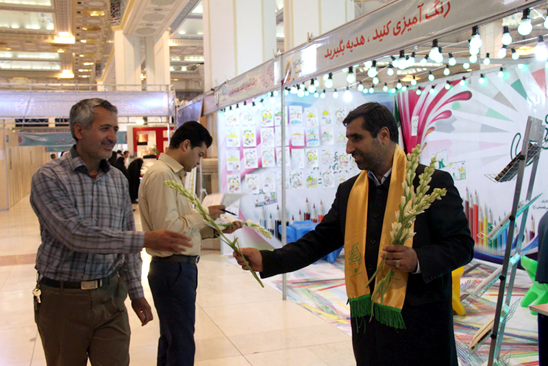 توزيع گل، همزمان با شب ميلاد كريم اهل بيت امام حسن مجتبي(ع) درنمایشگاه قرآن کریم ،غرفه آستان مقدس