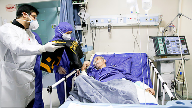 9561--عکس۱۳۹۹/۰۳/۱۹عیادت خادمین از بیماران کرونایی بیمارستان هاجر(س) در سالروز رحلت حضرت عبدالعظیم(ع) / عکس: محمد عشقی