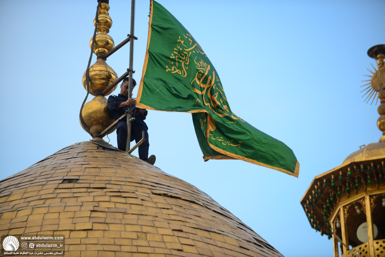 9855-ویدیو-۱۳۹۹/۰۸/۳۰آئین تعویض پرچم متبرک گنبد حرم حضرت عبدالعظیم(ع) در شب میلاد آنحضرت